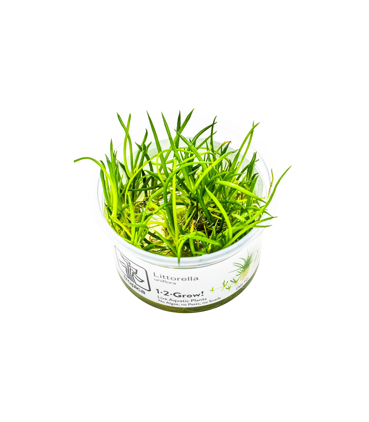 L'aspetto della Littorella uniflora la rende una pianta facilmente riconoscibile in acquario. Cresce spontaneamente sulle rive dei laghi d'Europa, Nord America e Sud America. Tollera un'intensità luminosa piuttosto bassa, ma questo aumenterà la lunghezza delle foglie. Ogni rosetta viene piantata separatamente a una distanza di pochi cm. Emetteranno facilmente stoloni. Col tempo si creerà un tappeto molto caratteristico di foglie grasse e carnose, lunghe 2-5 cm e larghe 0,1-0,3 cm.