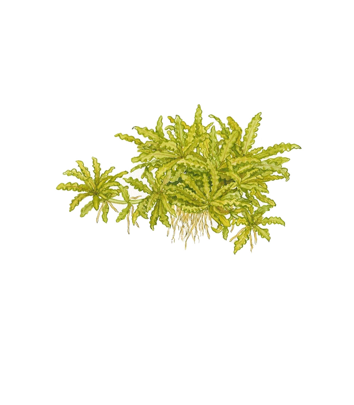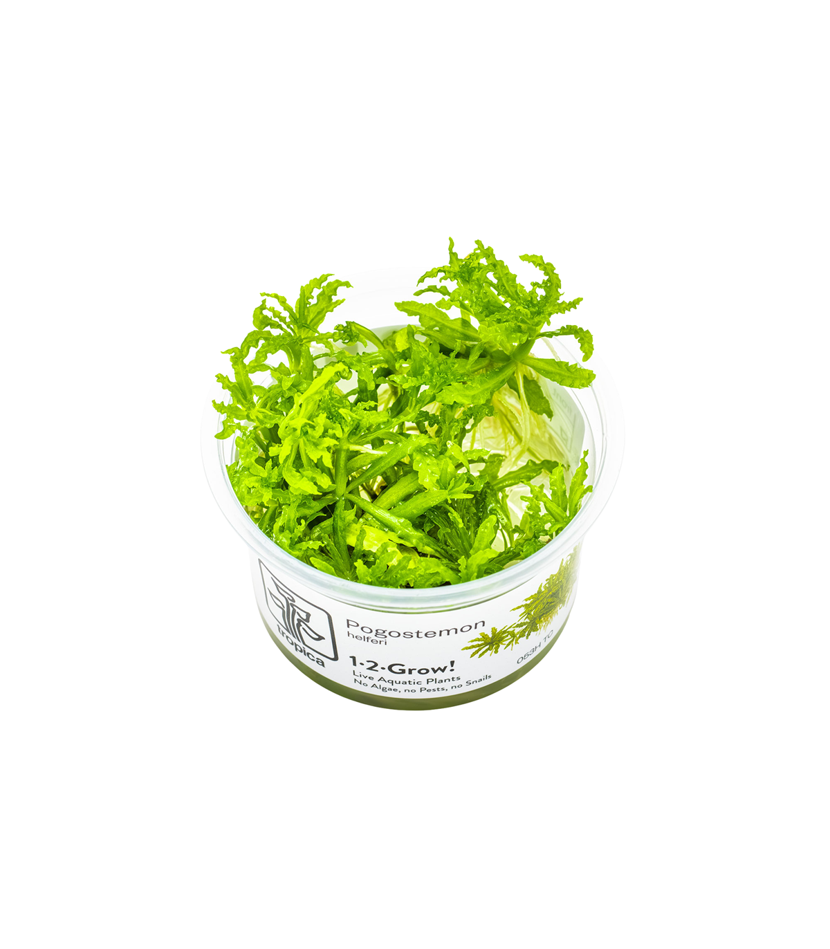 In Thailandia viene chiamata 'Downoi' (piccola stella), ed è facile capirne il motivo (5-10 cm di altezza e larghezza). Pogostemon helferi è una pianta insolita e distintiva, dal portamento compatto, foglie arricciate e un colore verde sorprendentemente bello. Con buone condizioni di luce e un substrato ricco di nutrienti, Pogostemon helferi produce numerosi germogli laterali, che sviluppano piccole radici, e la pianta forma rapidamente un impressionante tappeto di vegetazione in primo piano.