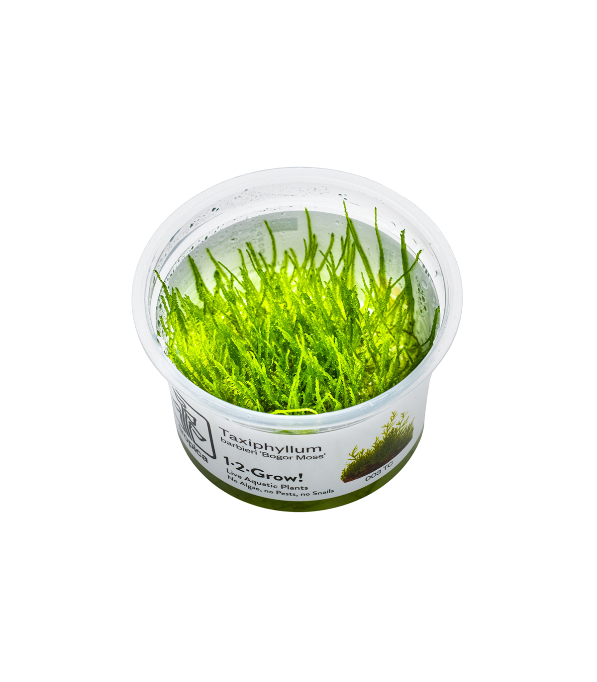 Il Taxiphyllum barbieri 'Bogor Moss', originario del Sud-Est asiatico, è una pianta resistente che richiede poca acqua o luce. Il muschio raggiunge uno spessore di 3-10 cm e cresce facilmente su qualsiasi superficie, quindi è ideale per decorare pietre e radici di alberi o per nascondere installazioni in acquario. Fissate la pianta con un pezzo di lenza da pesca o filo di cotone finché non si sarà aggrappata all'arredamento. Se la sua crescita diventa troppo rigogliosa, potete potarla con le forbici. Negli acquari da riproduzione, il Taxiphyllum barbieri è un meraviglioso nascondiglio per i giovani pesci.