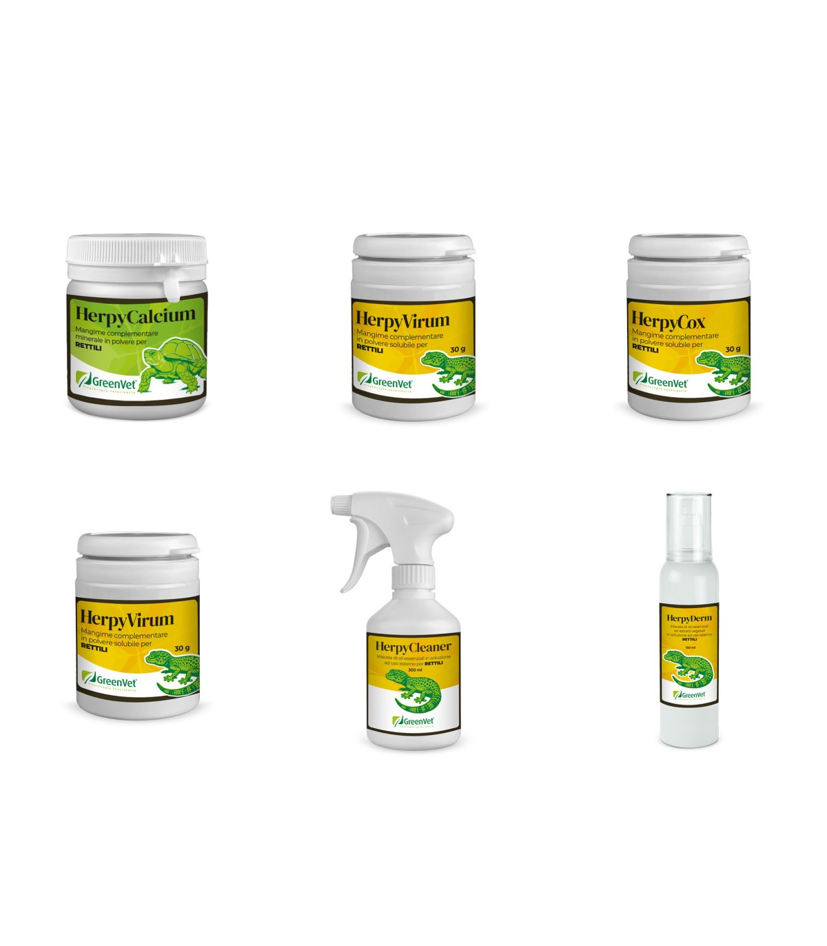 I mangimi complementari ed i prodotti GreenVet per rettili e anfibi contengono prodotti naturali definiti su base botanica, oltre a diverse miscele di piante officinali, estratti vegetali e oli essenziali. I prodotti nutritivi GreenVet sono da intendere come integrazione alla normale dieta e alimentazione degli animali.