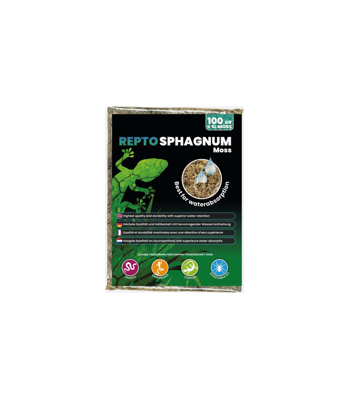Il Muschio di Sfagno 100% naturale di Repto è un prodotto essenziale per ogni terrario tropicale. Grazie alla sua straordinaria capacità di assorbimento, è ideale sia per trattenere l'umidità vitale all'interno dell'habitat, sia per decorare con un aspetto estremamente naturale e rigoglioso.